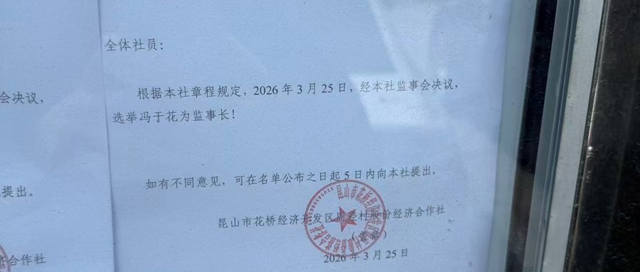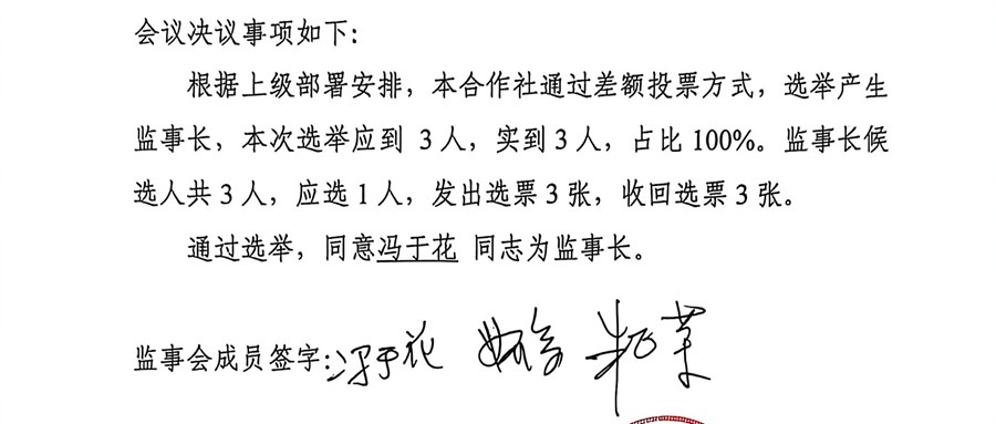 2026年3月25日周泾村股份经济合作社监事会-关于监事长选举
