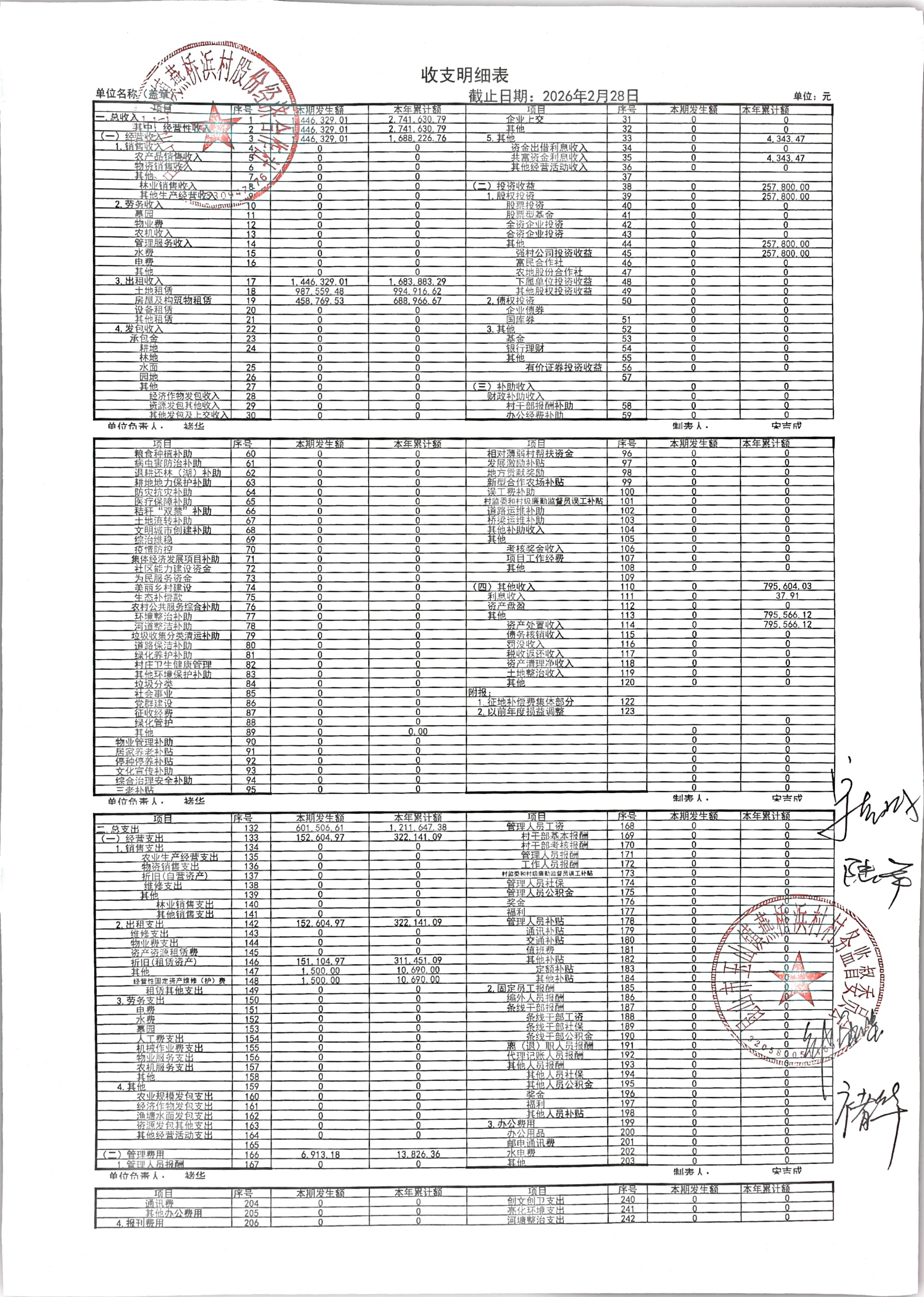 燕桥浜村3月财务公开