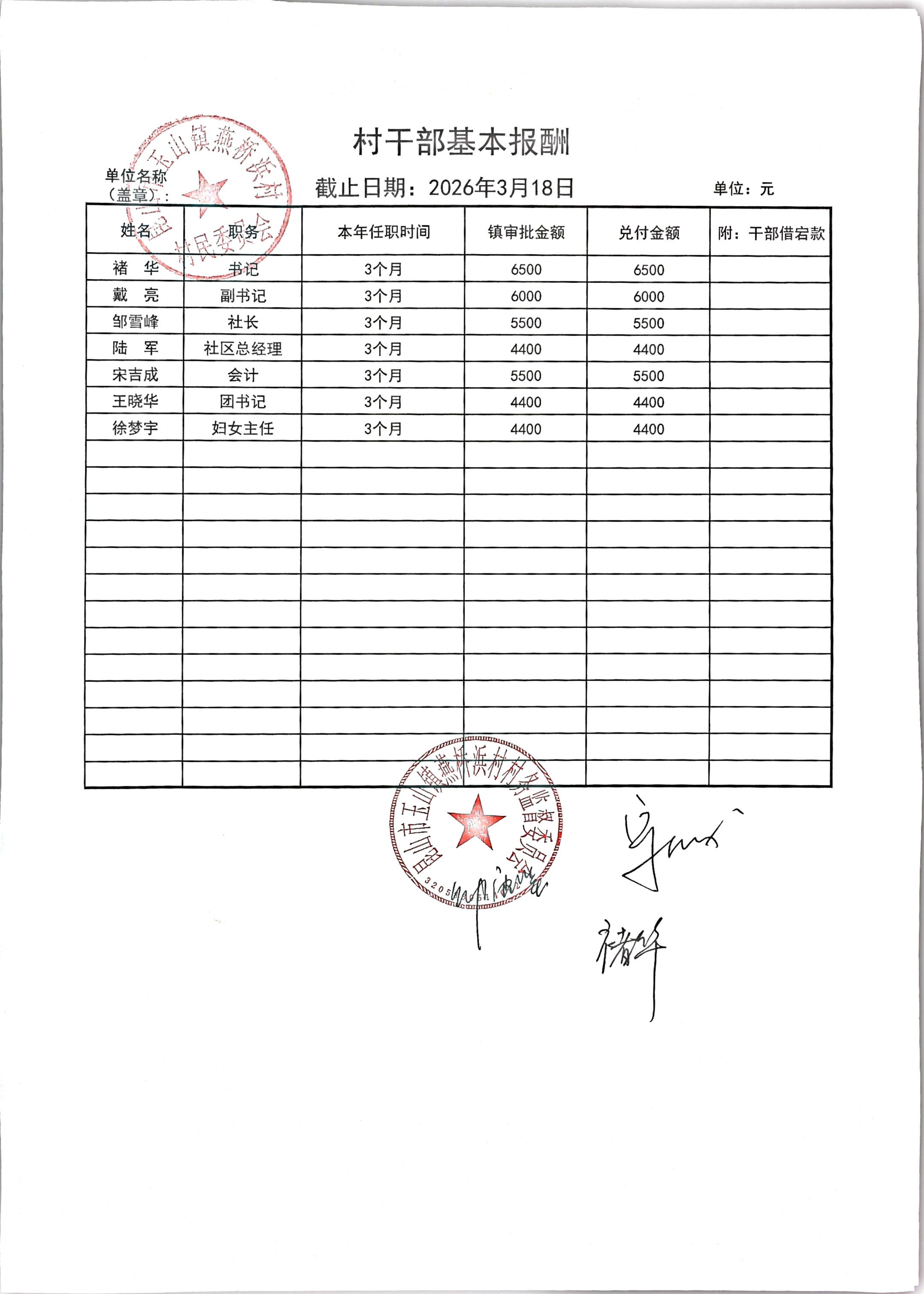 村盖章事项名录
