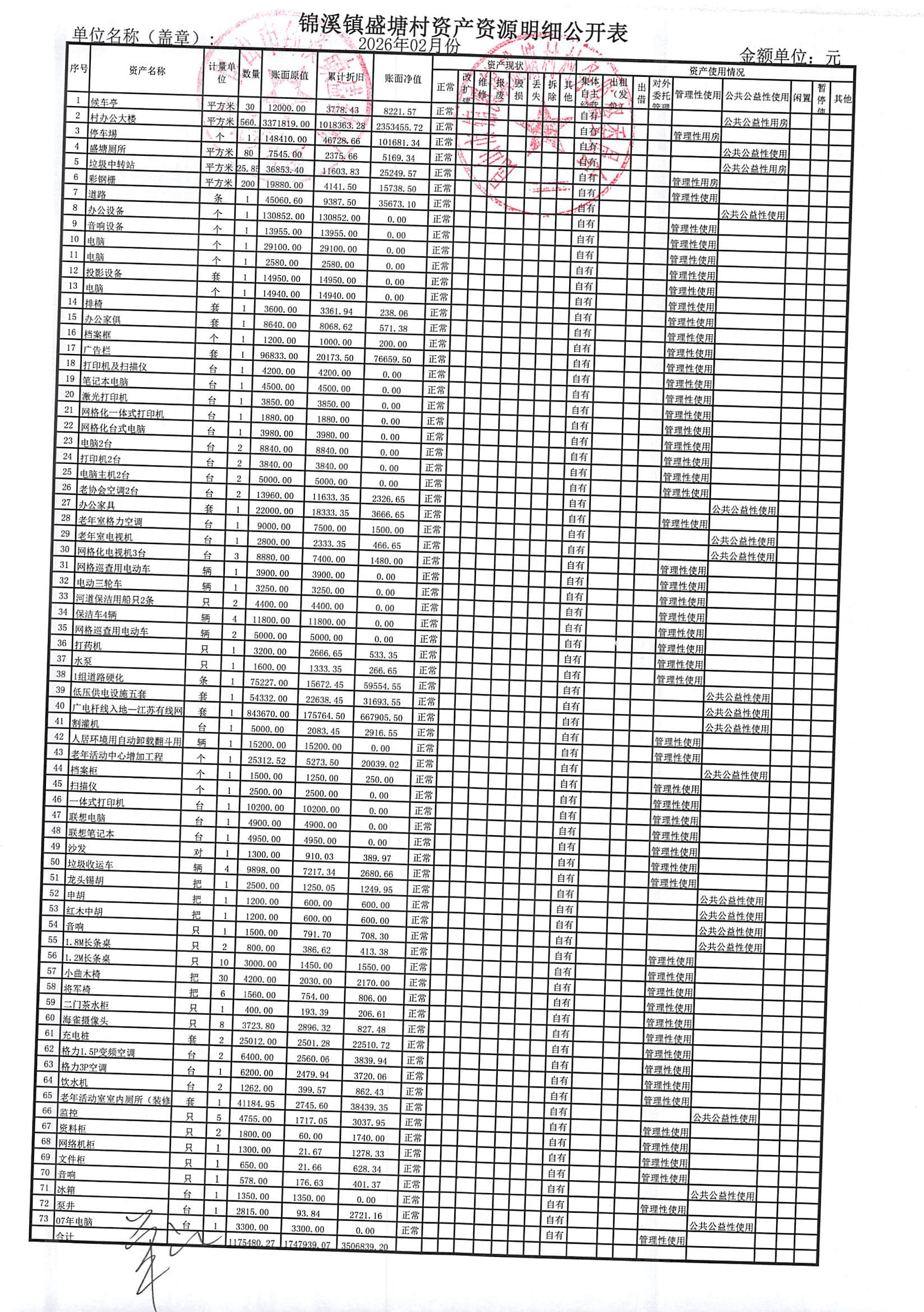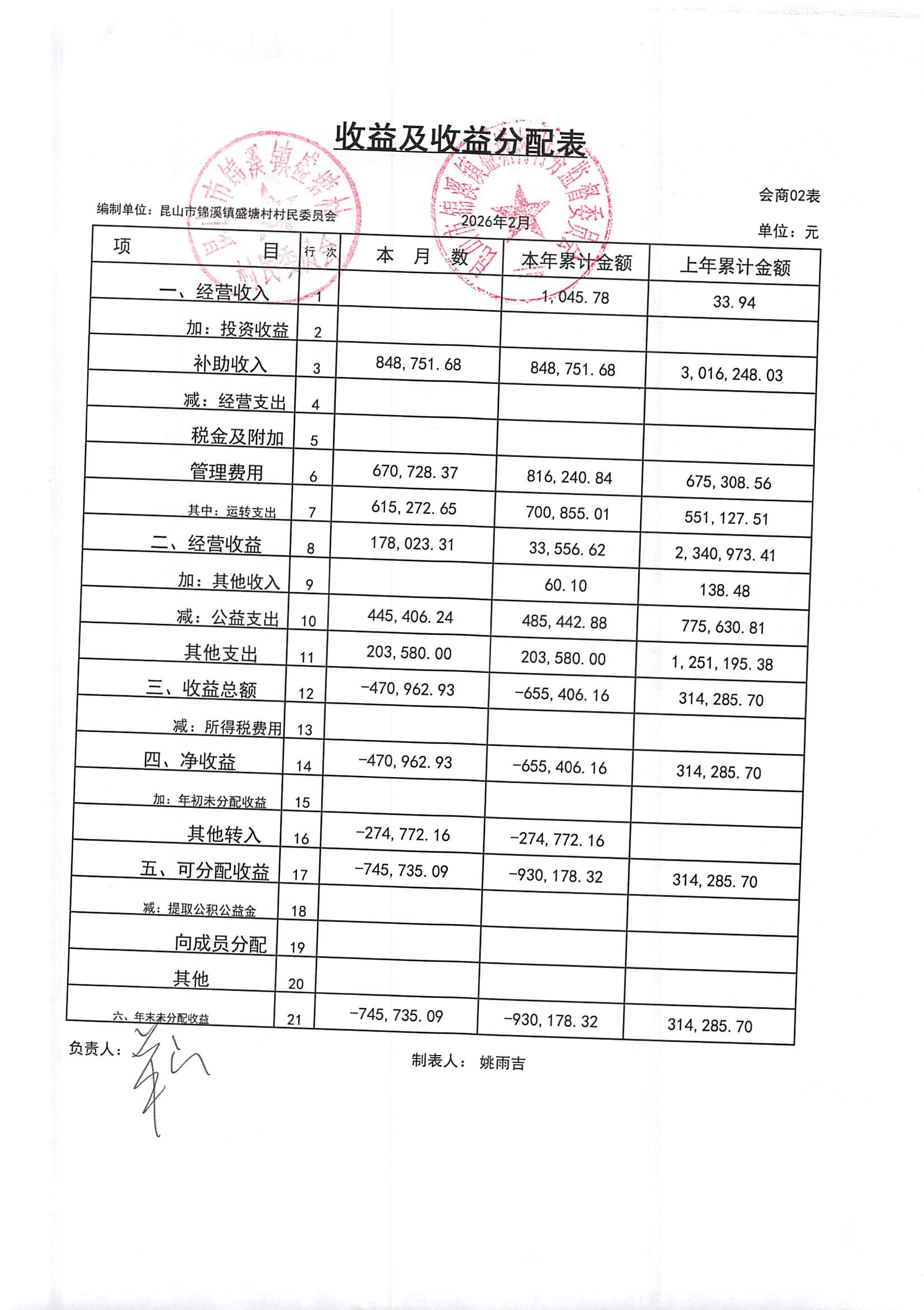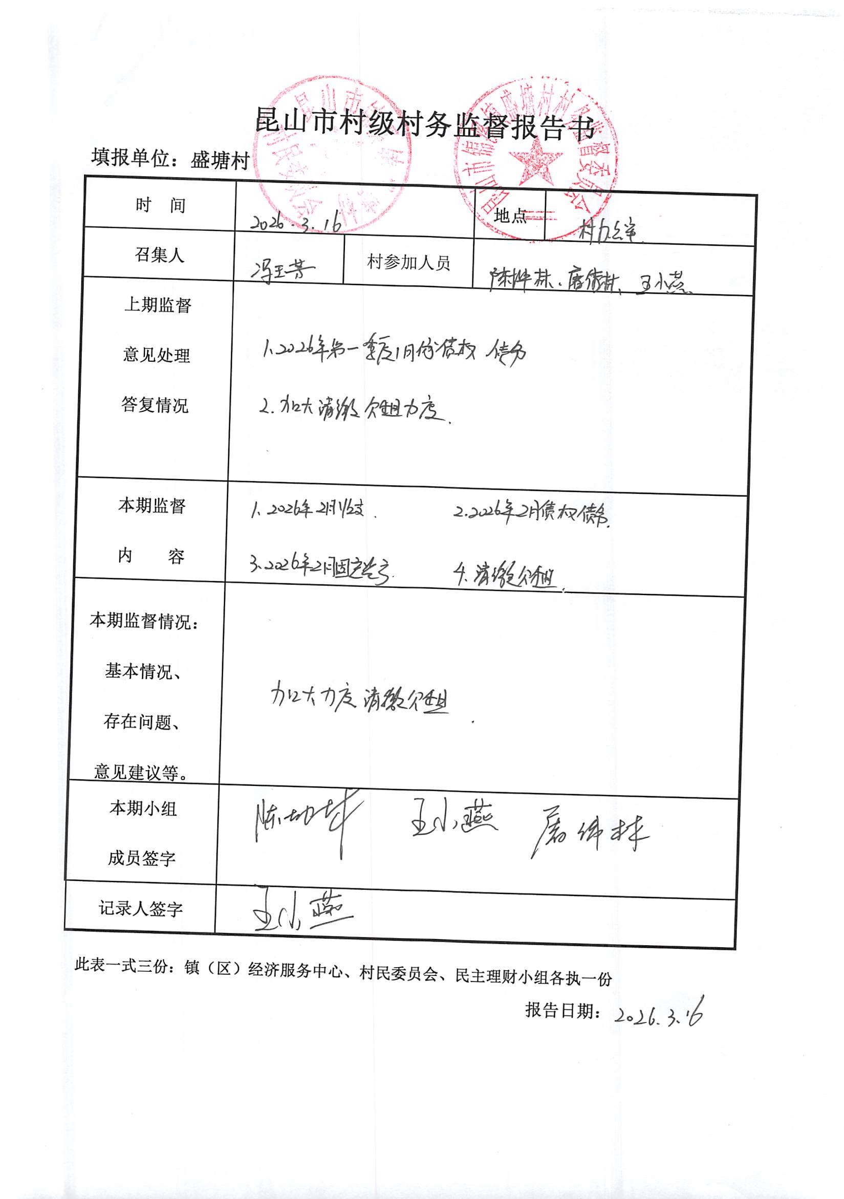 昆山市锦溪镇盛塘村2026年第一季度2月村财务公开资料