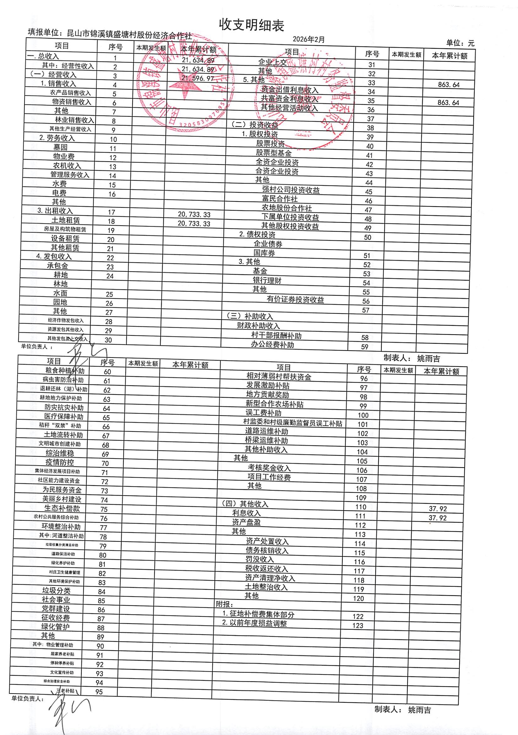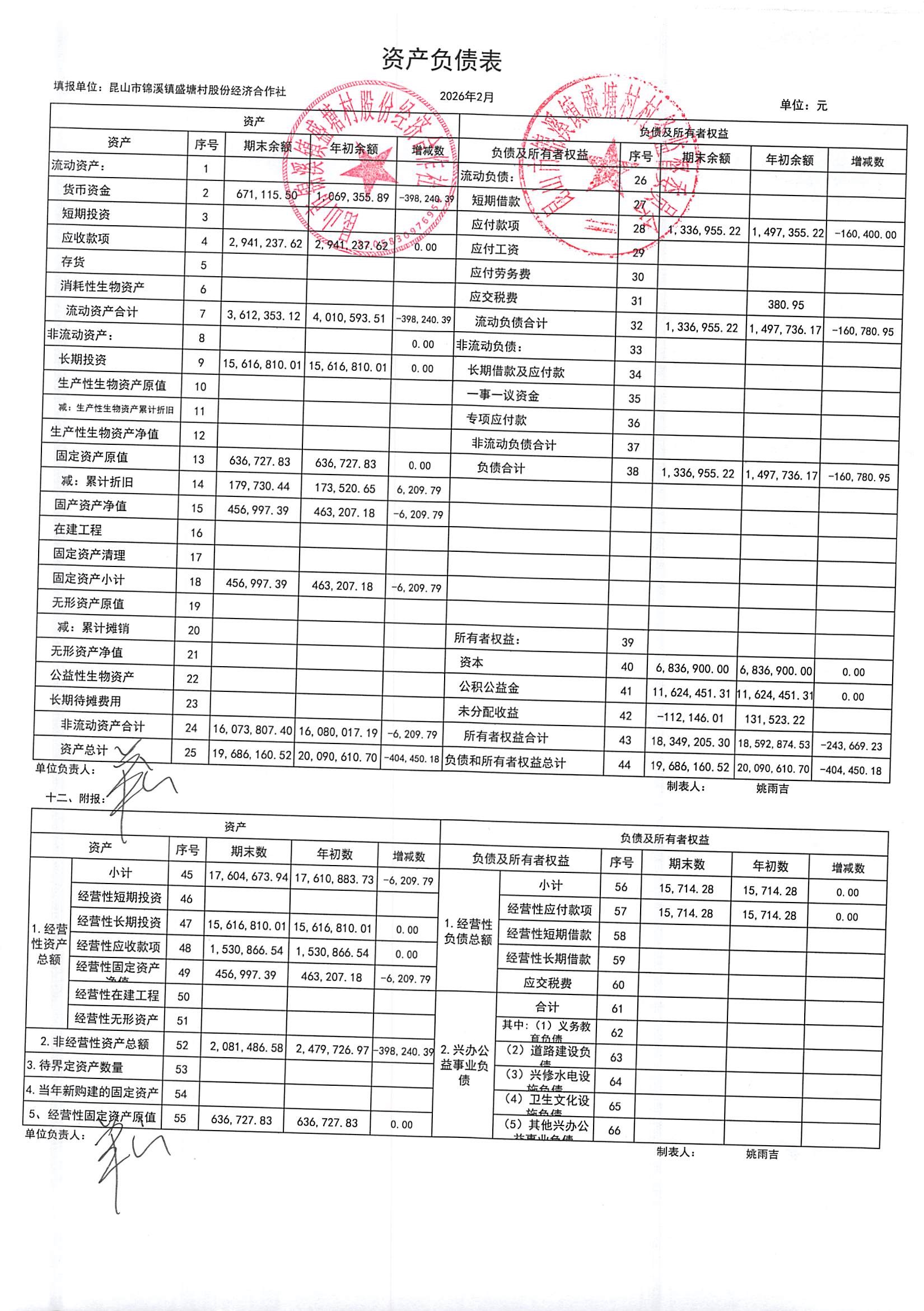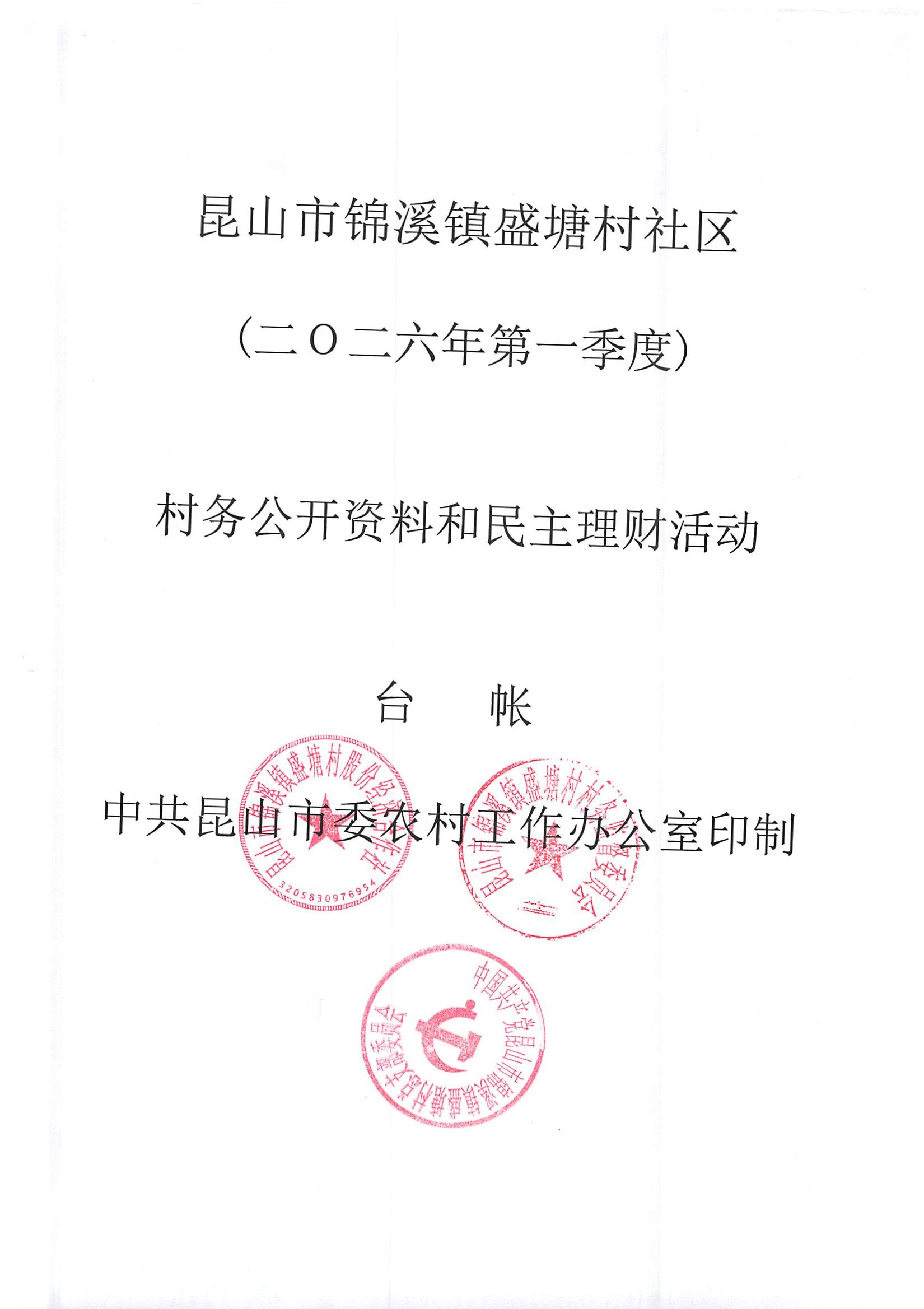 昆山市锦溪镇盛塘村2026年第一季度2月社区财务公开资料
