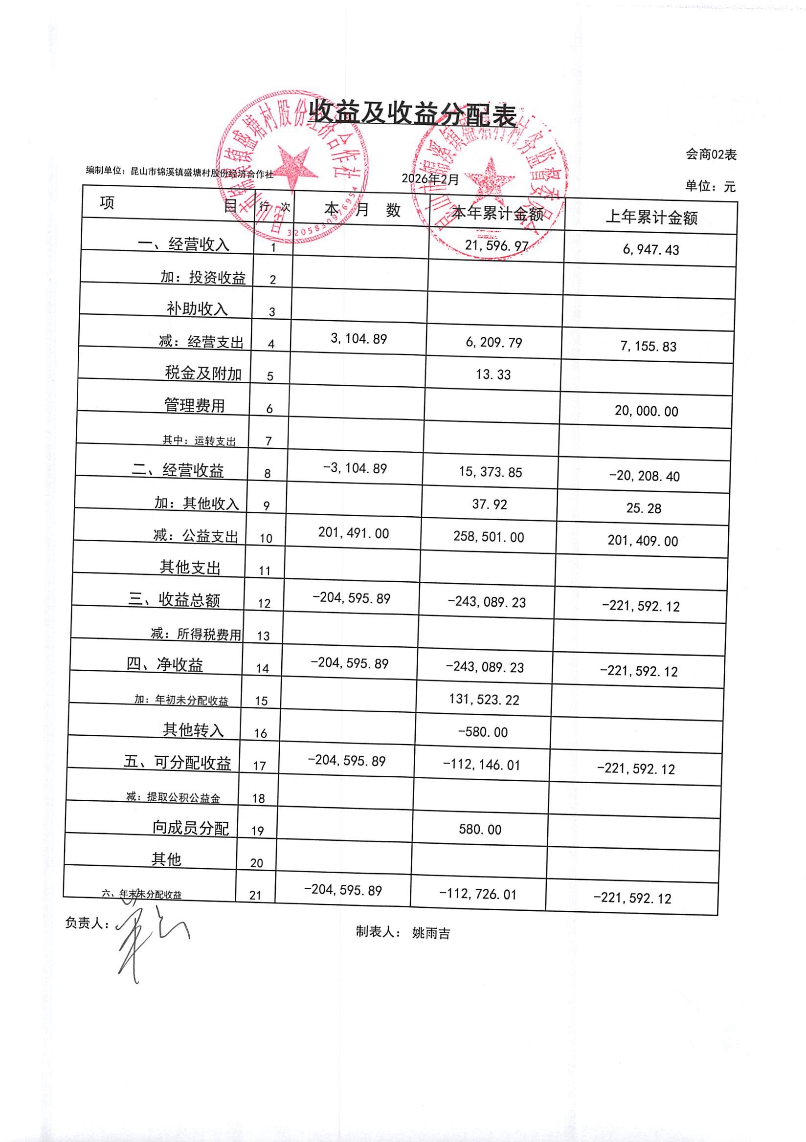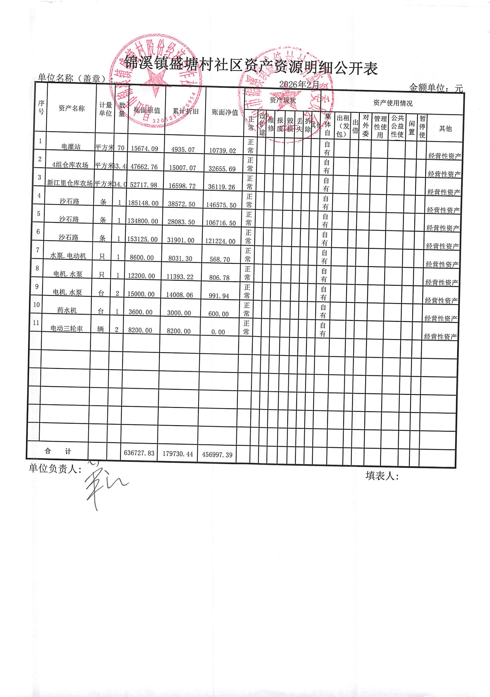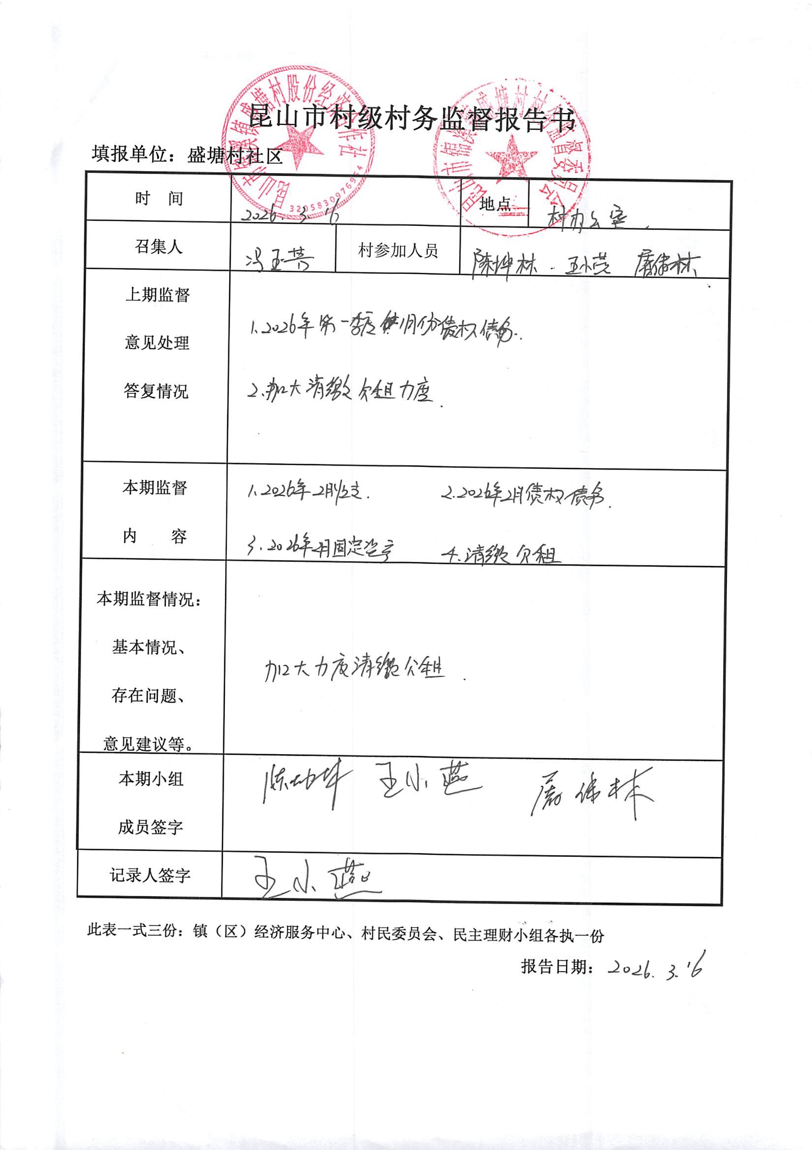 昆山市锦溪镇盛塘村2026年第一季度2月社区财务公开资料