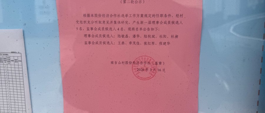 南吉山村股份经济合作社理事会、监事会成员候选人名单公告(第二轮公示)