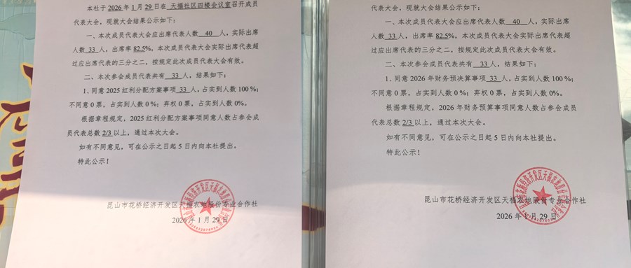 天福农地股份专业合作社成员代表代表大会会后公示