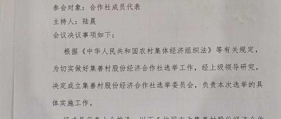 2026年1月30日集善村股份经济合作社换届选举选举委员会名单