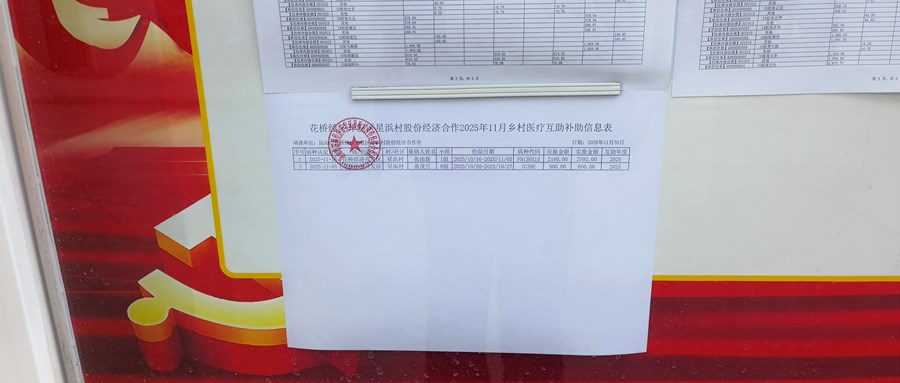 2025年星浜村股份经济合作社11月份乡村医疗补助信息公示