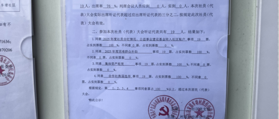 车塘村股份经济合作社理事会、监事会成员候选人名单第二次公告