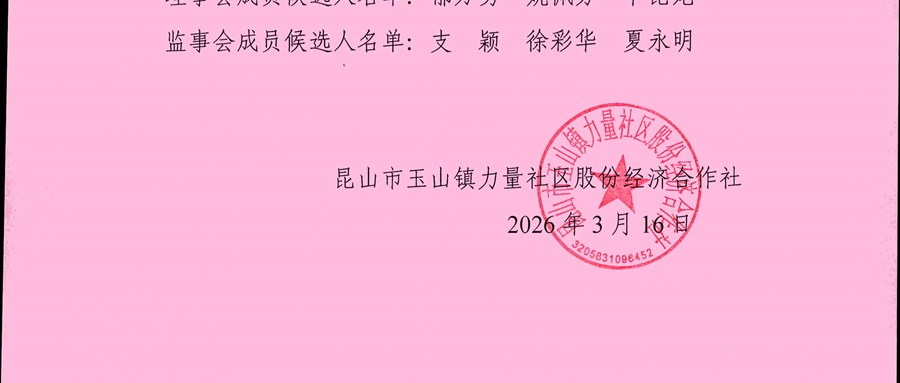 力量社区股份经济合作社理事会、监事会成员候选人名单公告