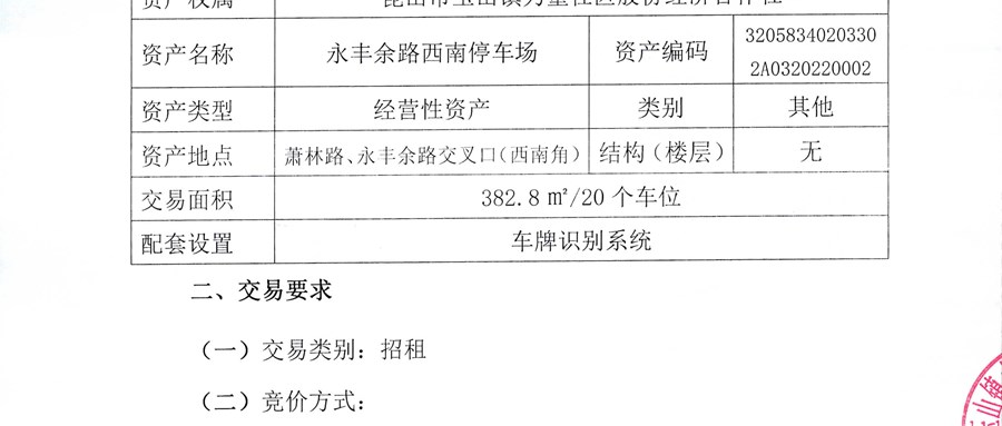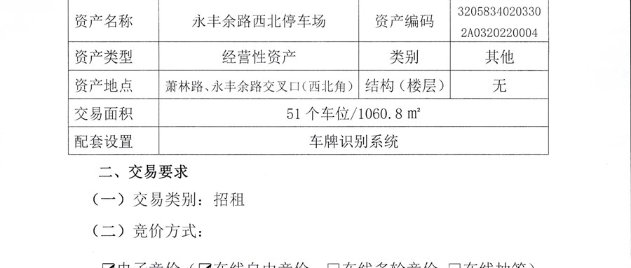 · 永丰余路西北停车场招租交易方案等公示