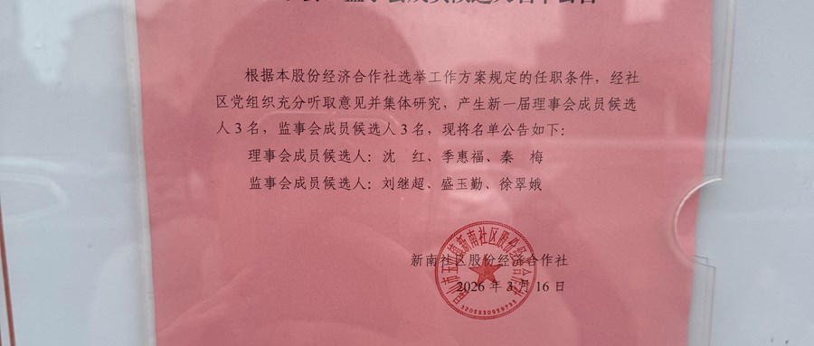 新南社区股份经济合作社理事会、监事会成员候选人名单公告(第二轮)