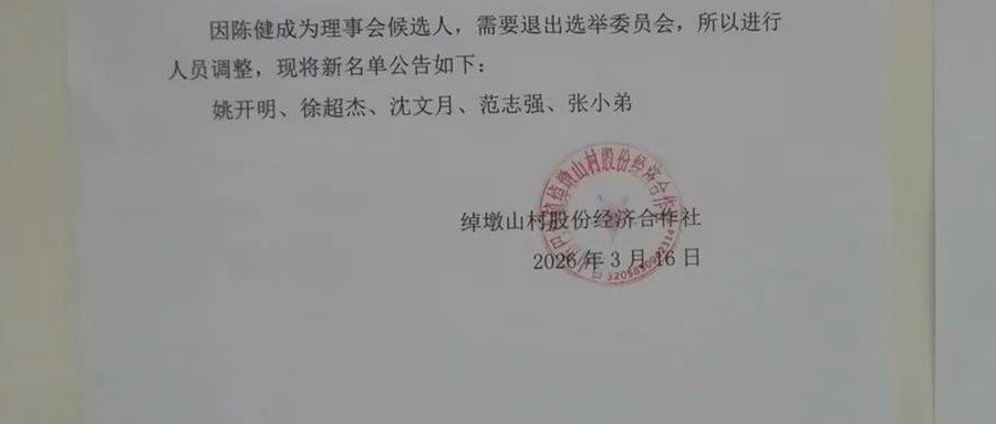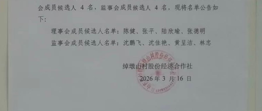2026年昆山市巴城镇绰墩山村股份经济合作社换届理事会、监事会成员候选人名单第二次公告