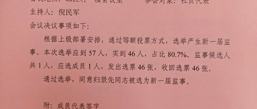 珠泾村股份经济合作社 理事会、监事会成员候选人正式名单公告