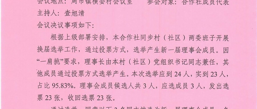 2026年3月21日横娄股份经济合作社成员代表大会决议