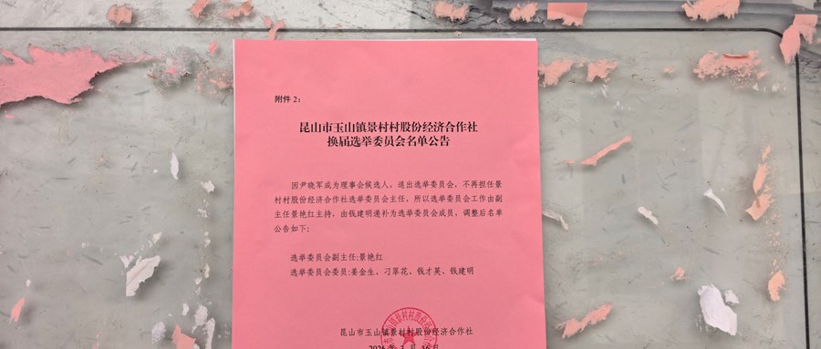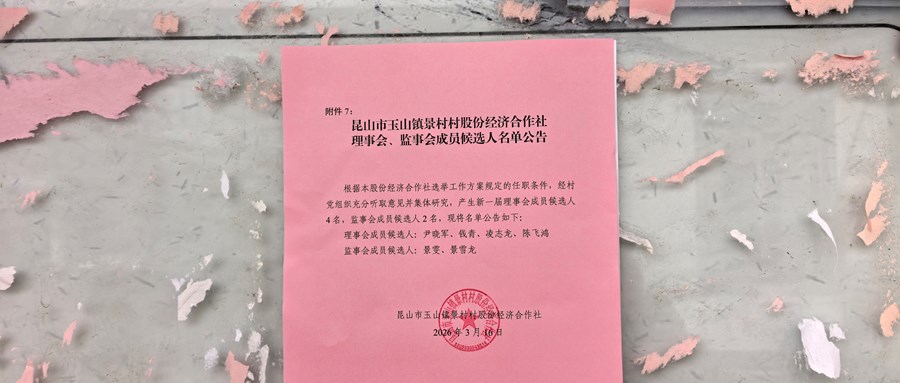 昆山市玉山镇景村村股份经济合作社理事会、监事会成员候选人名单公告
