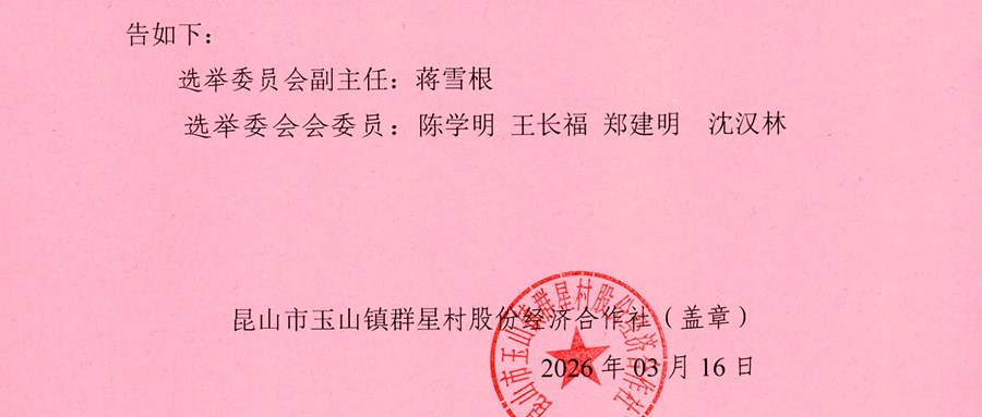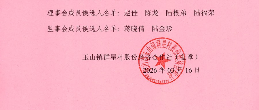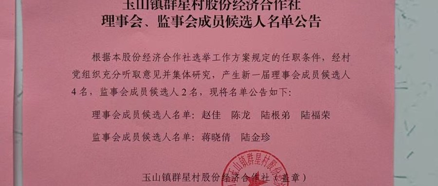 玉山镇群星村股份经济合作社理事会、监事会成员候选人名单公布