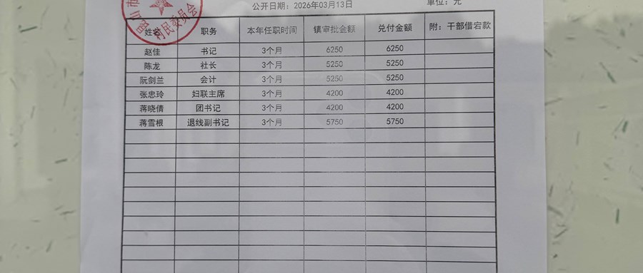 昆山高新区群星村2026年03月份公开村干部基本报酬信息图片
