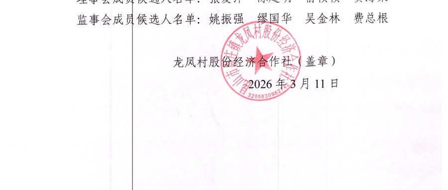 2026年龙凤村股份经济合作社换届选举候选人公告