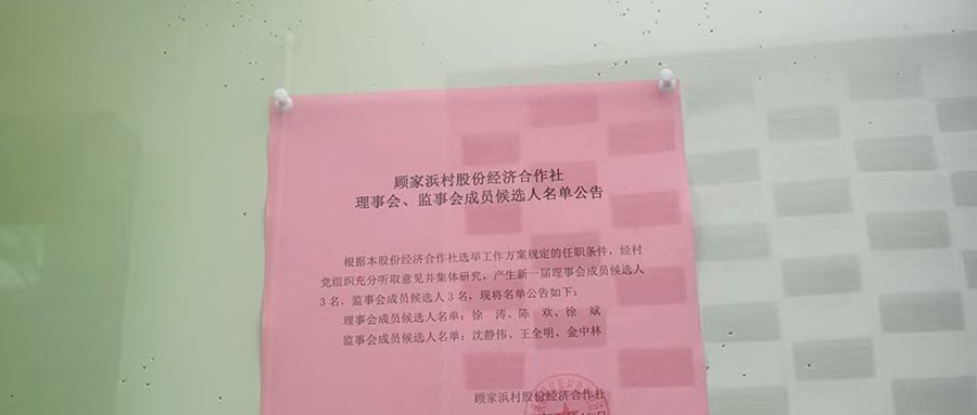 顾家浜村股份经济合作社换届选举委员会名单公告、选举方案公示