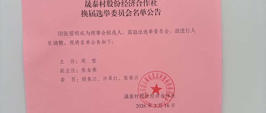 2026年晟泰村股份经济合作社换届选举日公示