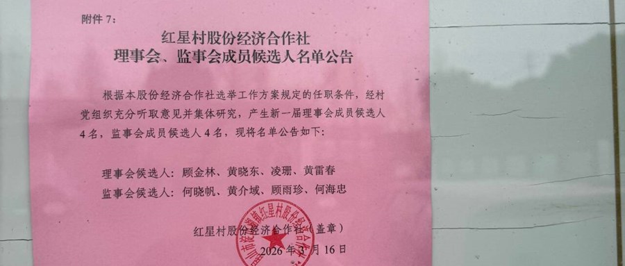 红星村股份经济合作社理事会、监事会成员候选人名单二次公告
