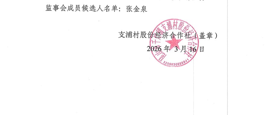 支浦村股份经济合作社 理事会、监事会成员候选人名单公告
