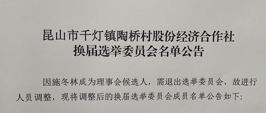 陶桥村股份经济合作社选举委员会成员通过决议公告