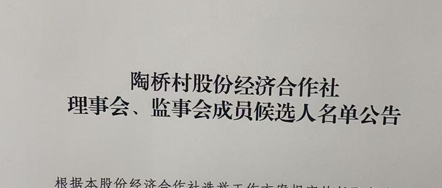 陶桥村股份经济合作社理事会、监事会成员候选人名单公告