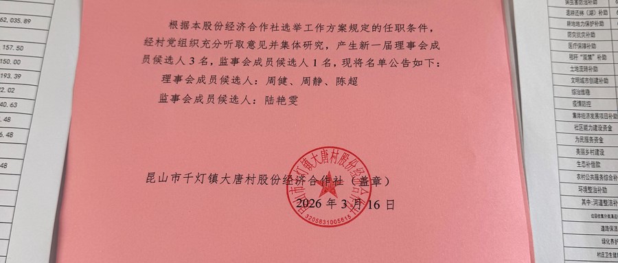 大唐村股份经济合作社理事会、监事会成员候选人名单公告
