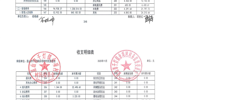 2025年11月余项村、股份经济合作社财务公开公示栏照片