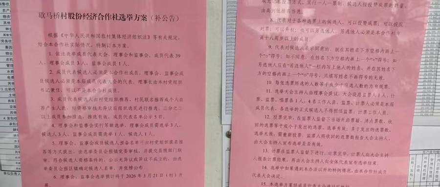 歇马桥村股份经济合作社选举方案公告