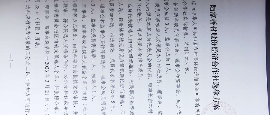 2026年陆家桥村股份经济合作社换届选举方案