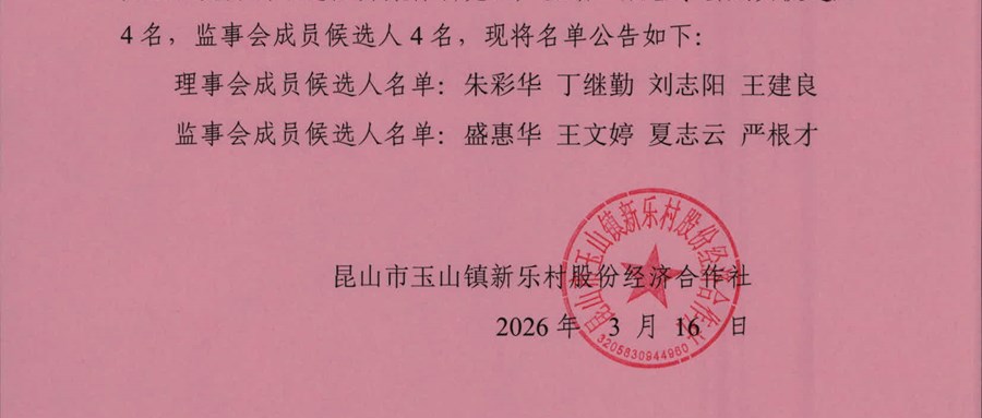 新乐村股份经济合作社理事会、监事会成员候选人名单公示