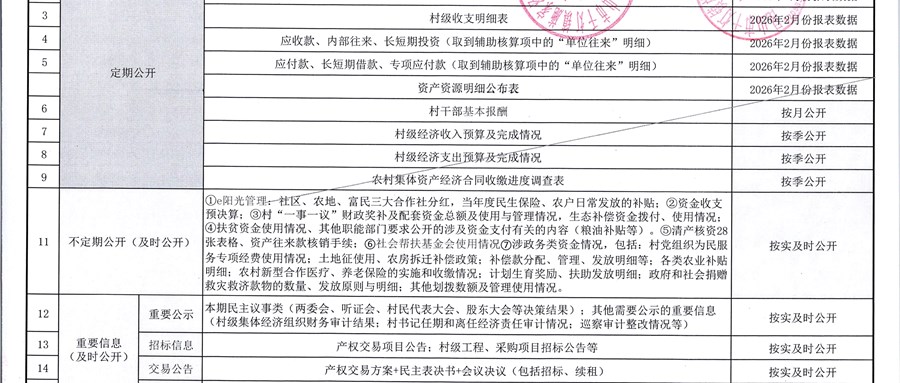 2026年3月份施家泾村财务公开