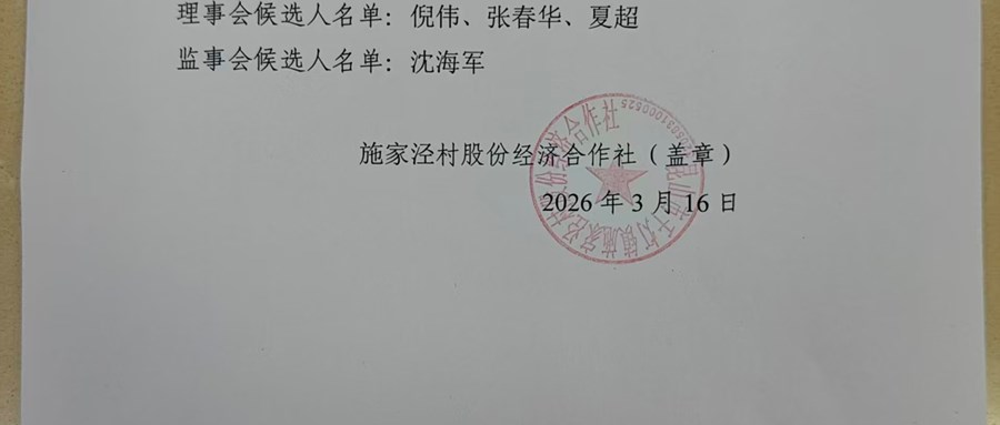 施家泾股份经济合作社换届选举委员会名单公示