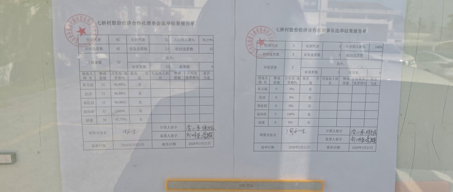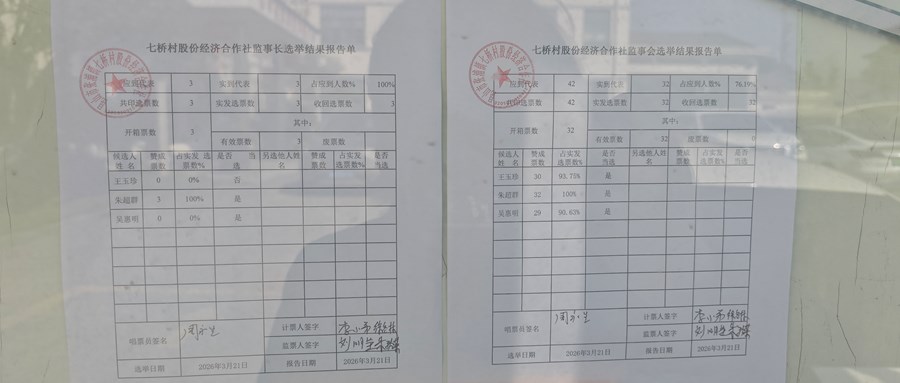 七桥村股份经济合作社监事会和监事长结果报告单