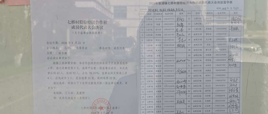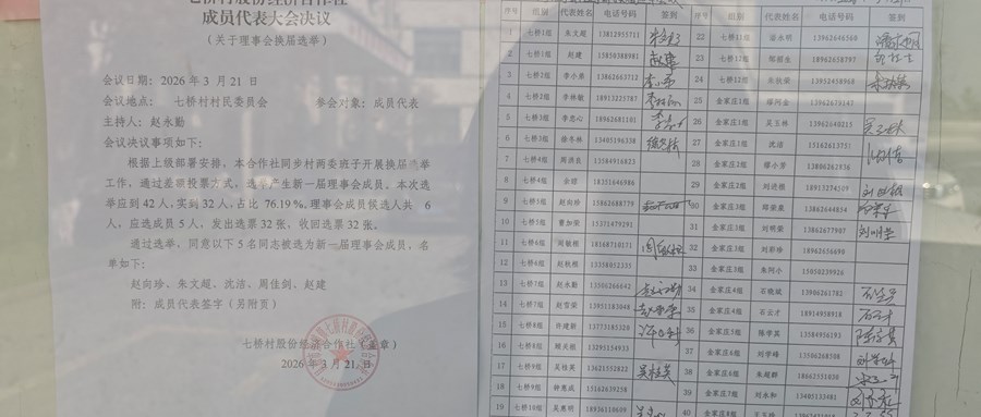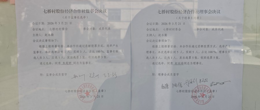 七桥村股份经济合作社监事会换届选举决议(关于监事会换届选举)