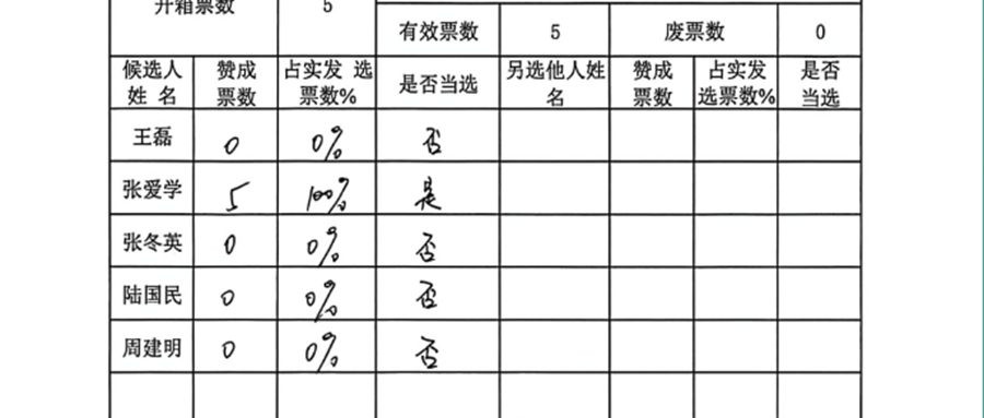 吴加村股份经济合作社理事会、理事长、监事会、监事长计票结果报告单
