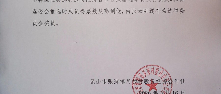 吴加村股份经济合作社换届选举公告