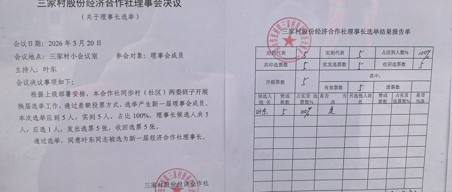 三家村股份经济合作社换届选举(理事会候选人退出选举委员会公告)