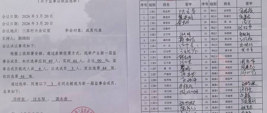 三家村股份经济合作社换届选举理事会、监事会候选人第二轮公示
